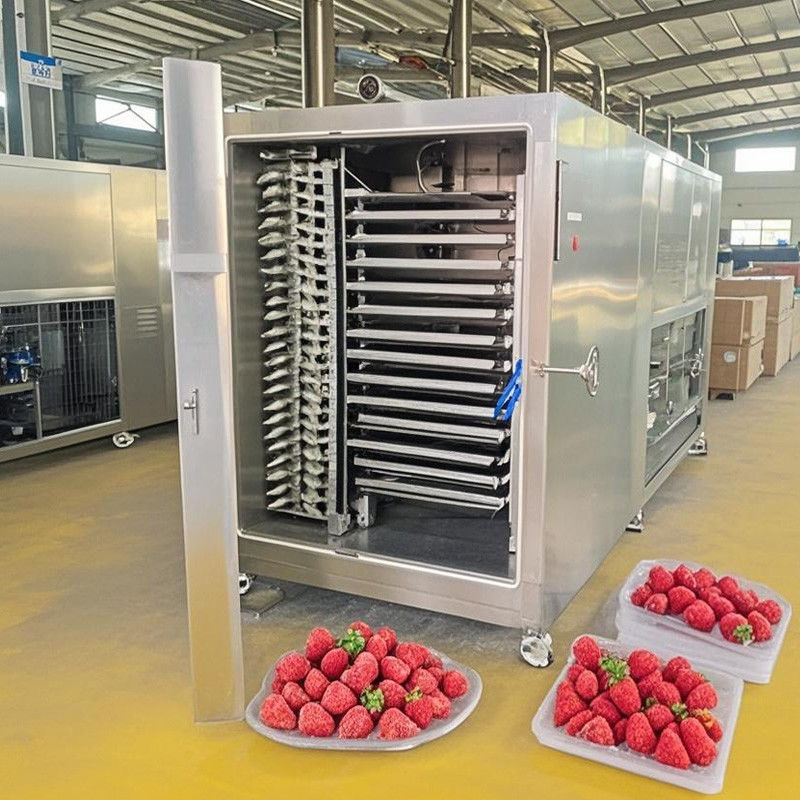 उच्च आर्द्रता वाले खाद्य पदार्थों के लिए अनुकूलित, इस 200 किलोग्राम इकाई में मांस/फलों की कोशिकाओं में बर्फ के क्रिस्टल के गठन को रोकने के लिए पेटेंट "त्वरित-जमे" तकनीक (-40 डिग्री सेल्सियस में 30 मिनट) है।प्राथमिक/द्वितीय सुखाने के बीच स्वचालित तेल मुक्त वैक्यूम पंप स्विच.